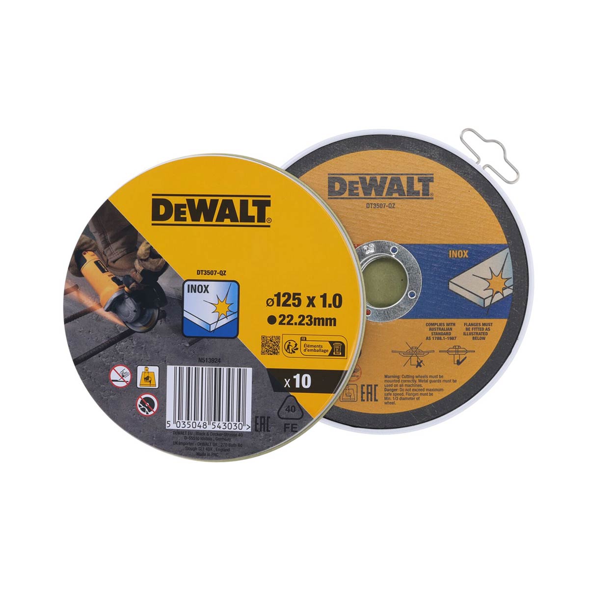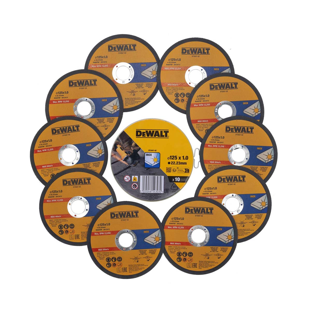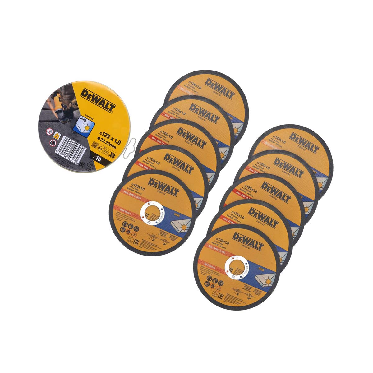 A DeWalt DT3507 egy 125 x 1,0 x 22,23 mm méretű vágótárcsa, amelyet rozsdamentes acél vágására terveztek. Kiváló minőségű alumínium-oxid receptúrával készül, amely gyors és tiszta vágást biztosít. A csomag 10 darab DT3507 vágótárcsát tartalmaz.