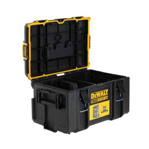 A DeWalt DWST83294-1 ToughSystem DS300 egy robusztus és vízálló szerszámosláda, amely ideális választás szakemberek számára, akiknek fontos a szerszámaik biztonságos és rendezett tárolása a munkaterületen és szállítás közben. A ToughSystem 2.0 generáció tagjaként kompatibilis a ToughSystem 1.0 rendszerrel, így könnyen kombinálható a már meglévő tároló megoldásokkal.