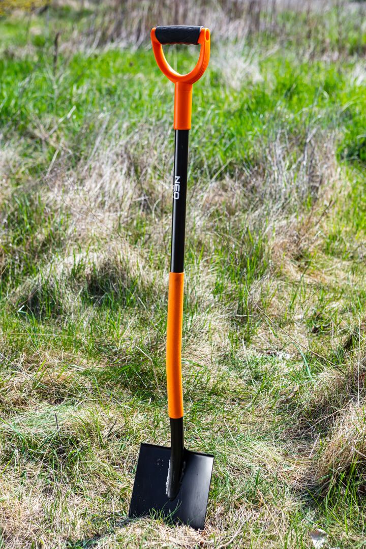 Edzett ásó a NEO márkától, amely ideális választás kertészkedéshez vagy építkezési munkákhoz. Az ásó fejét kiváló minőségű edzett acélból készítették, amely biztosítja a tartósságot és a hatékonyságot. Az egyenes végű fej megkönnyíti a talaj ásását és a földdarabok szétzúzását.