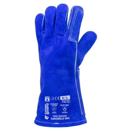 Leírás: EUROWELD antisztatikus hegesztőkesztyű marhabőr kék püréből, tenyér felett megerősített, gyapjúval bélelt, kényelmes és strapabíró, Kevlar cérnával varrott, hossza 15 cm