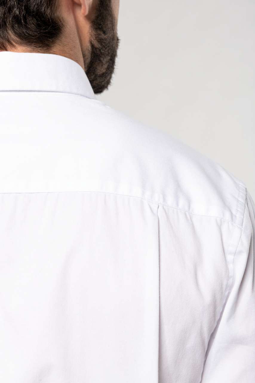 A Kariban Nevada hosszú ujjú férfi ing ideális választás szakácsok, vendéglátósok és más szakemberek számára, akik kényelmes, tartós és professzionális megjelenést biztosító munkaruhát keresnek. A 100% pamut anyag egész napos komfortot nyújt, míg a klasszikus szabás elegáns megjelenést kölcsönöz.