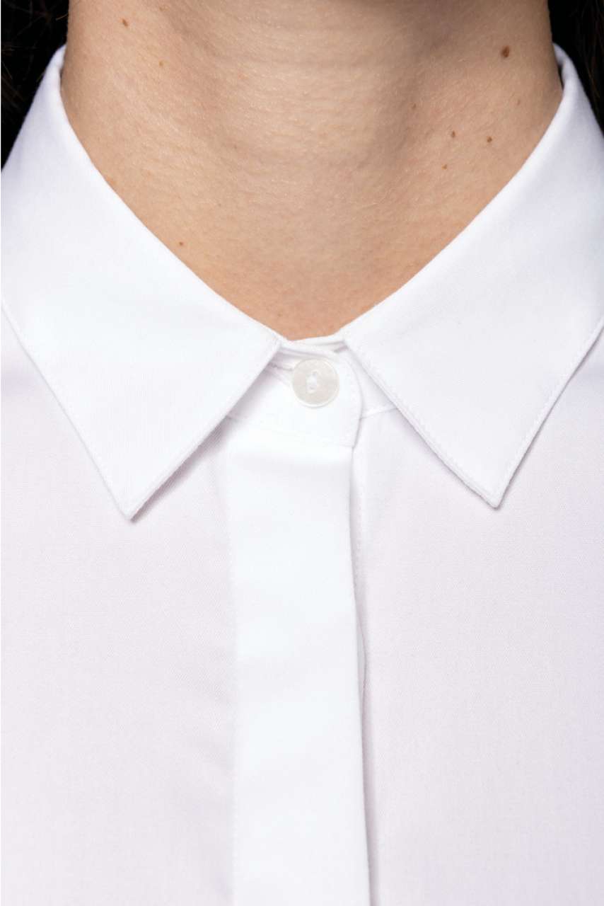 A Kariban Premium Női Twill Ing elegáns és kényelmes viselet szakemberek számára. Ideális választás szakácsoknak és felszolgálóknak, akik stílusos megjelenést szeretnének munka közben.