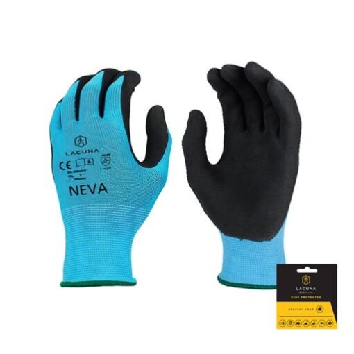 A NEVA kék latex bevonatos kesztyű egy nylon kötött kesztyű, melynek tenyere és ujjai latex bevonattal vannak ellátva. Ez a bevonat biztosítja a precíz kezelést száraz körülmények között. A kesztyű megfelel az EN 420 és EN 388 (2131X) szabványoknak.