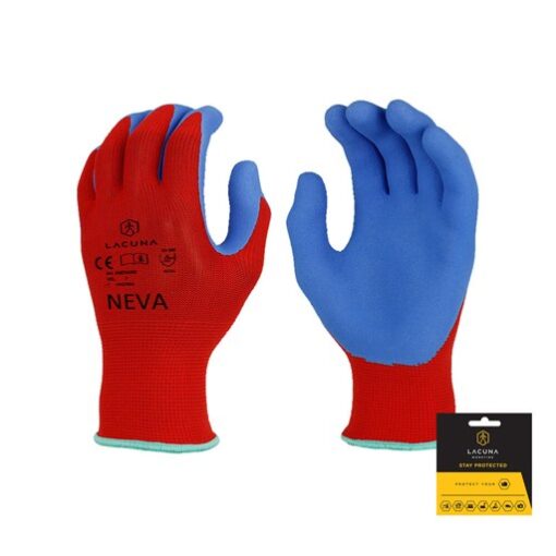 A NEVA latex bevonatos kesztyű egy nylon kötött kesztyű, amelyet latex bevonat borít a tenyéren és az ujjakon. Ez a bevonat biztosítja a precíz kezelést száraz körülmények között. A kesztyű megfelel az EN 420 és EN 388 (2131X) szabványoknak.