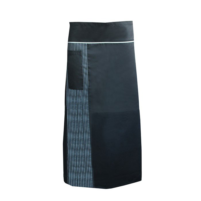 A Lacuna ADRIATIC hosszú fekete kötény egy univerzális méretű munkakötény, amelyet kifejezetten szakácsok és felszolgálók számára terveztek. 65% poliészterből és 35% pamutból készült, 215 g/m² tömegű Tencate Tecawork™ anyagból. A kötény ipari mosásra alkalmas 75 °C-on, és mosógépben 60 °C-on mosható.