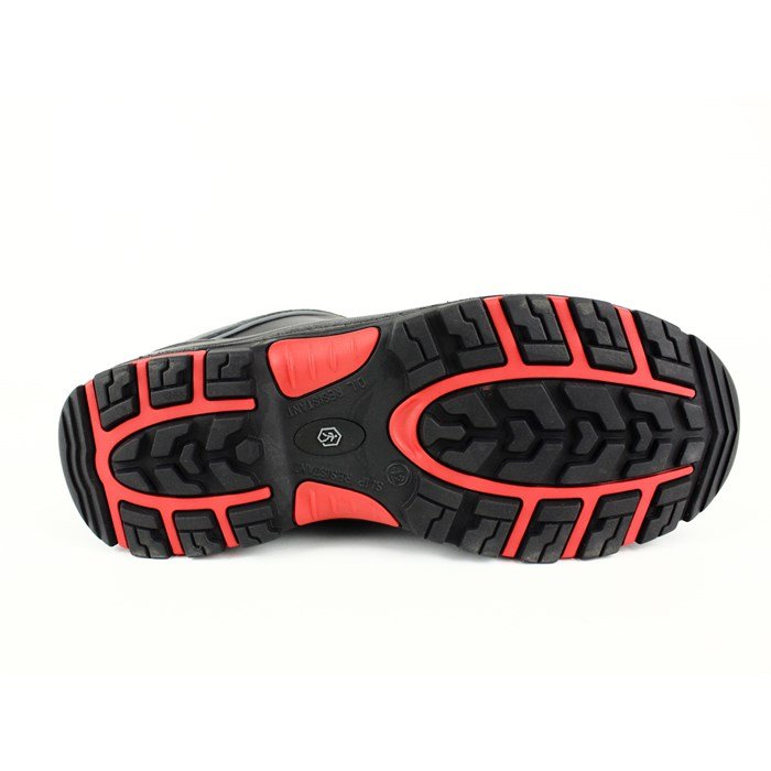 Ez a strapabíró munkavédelmi cipő vízálló marhabőrből készült felsőrésszel rendelkezik, amely védelmet nyújt a nedvesség ellen. A kompozit orrmerevítő és a textil talplemez garantálja a láb biztonságát a leeső tárgyak és a talajon áthatoló éles tárgyak ellen. A kétrétegű PU/nitril gumi talp ellenáll a kontakt hőnek 300°C-ig, emellett kiváló csúszásgátló tulajdonságokkal is rendelkezik. Az ESD védelem biztosítja az elektrosztatikus kisülések elleni védelmet.