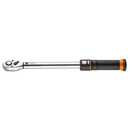 A NEO nyomatékkulcs 3/8″ ideális választás professzionális felhasználók számára. A 410 mm hosszúságú kulcs 10-60 Nm tartományban állítható, +/- 3% pontossággal. A beépített skálaablak megkönnyíti a kívánt értékek beállítását. A 45 fogú erős racsnis mechanizmus és a króm-vanádium acélból készült test garantálja a tartósságot. A kényelmes műanyag markolat és a kalibrációs tanúsítvány biztosítják a megbízhatóságot.
