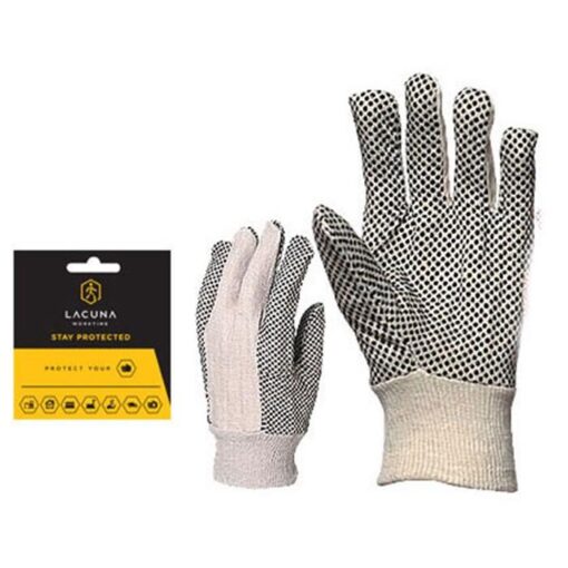 A TANA pamut kerti kesztyű 10-es méretben készült, fekete PVC granulátum bevonattal mindkét oldalon a jobb tapadásért. Elasztikus mandzsettával rendelkezik és megfelel az EN 420 európai biztonsági szabványnak.