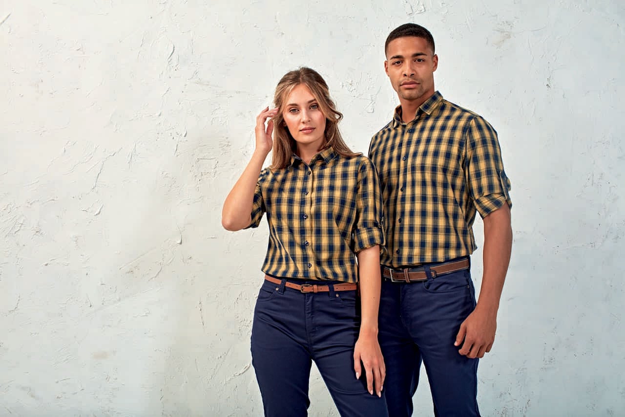 A Premier Mulligan Check férfi hosszú ujjú ing 100% pamut puplin anyagból készült munkaruha vendéglátó szakemberek számára, 115 g/m² gramázs súllyal. Az ing fitted szabással, bočni šav oldalsó varrással és kockás mintával rendelkezik, két színkombinációban elérhető: Camel-Navy és Red-Navy. Mosási utasítás: érzékeny program 40°C-on, közepes hőmérsékletű vasalás, nem szárítható gépi szárítóban, nem vegytisztítható.