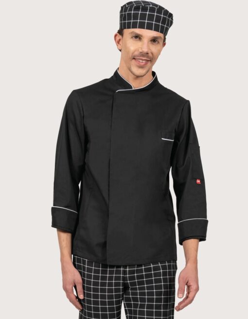 A Toma Youniform OMEGA szakácskabát a professzionalizmus megtestesítője. A klasszikus fekete szín elegáns részletekkel a galléron, zseben és ujjakon kiemeli a viselőjét. Ideális választás séfeknek, cukrászoknak és nyitott konyhák személyzetének.