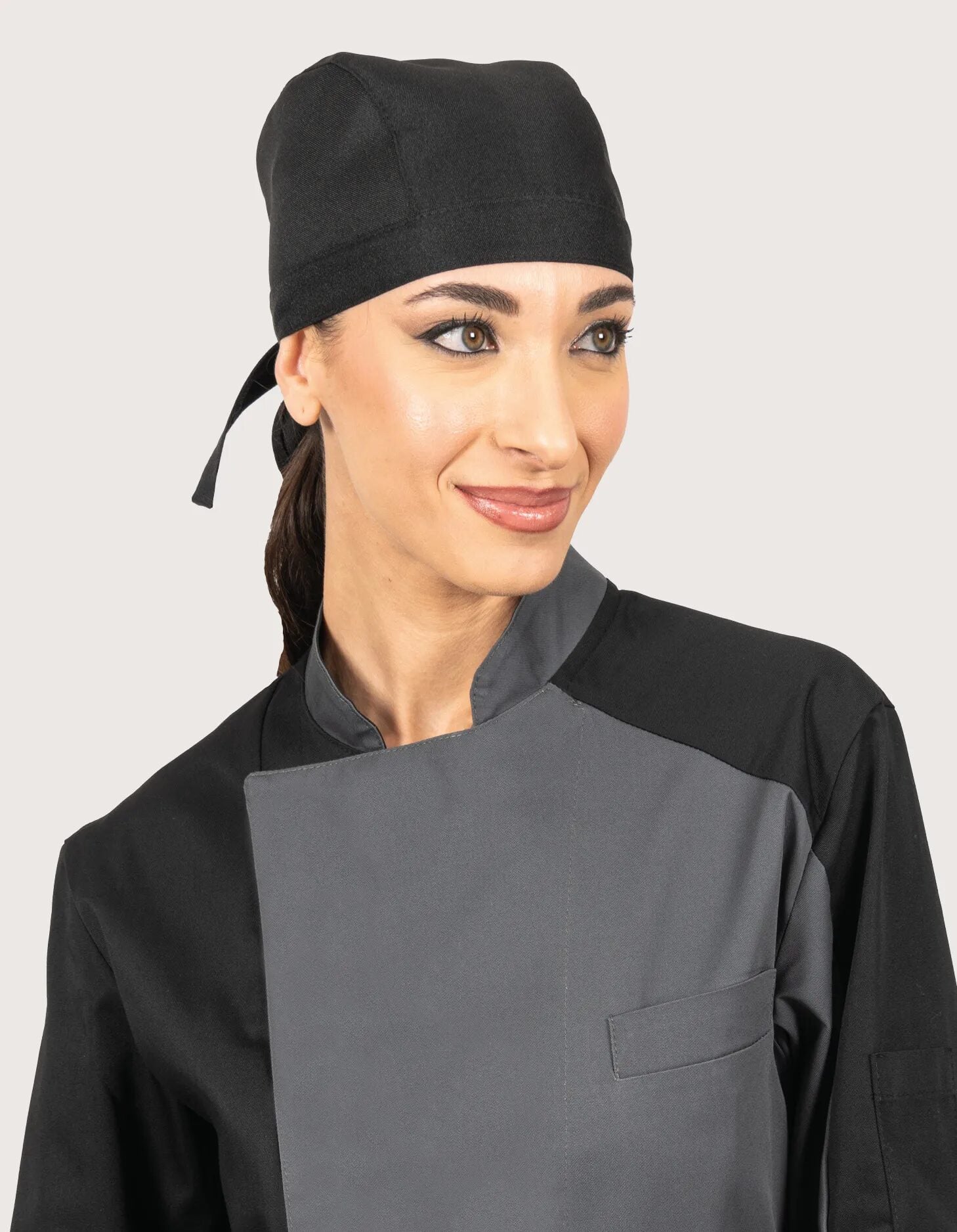 A Toma Youniform Aspen szakácskendő ideális választás szakácsok, pincérek és kisegítő személyzet számára, akik egy modernebb és praktikusabb alternatívát keresnek a hagyományos szakácssapkához képest. Ez a kendő sportos eleganciát biztosít, miközben szorosan illeszkedik a fejhez a tarkónál történő megkötésnek köszönhetően.