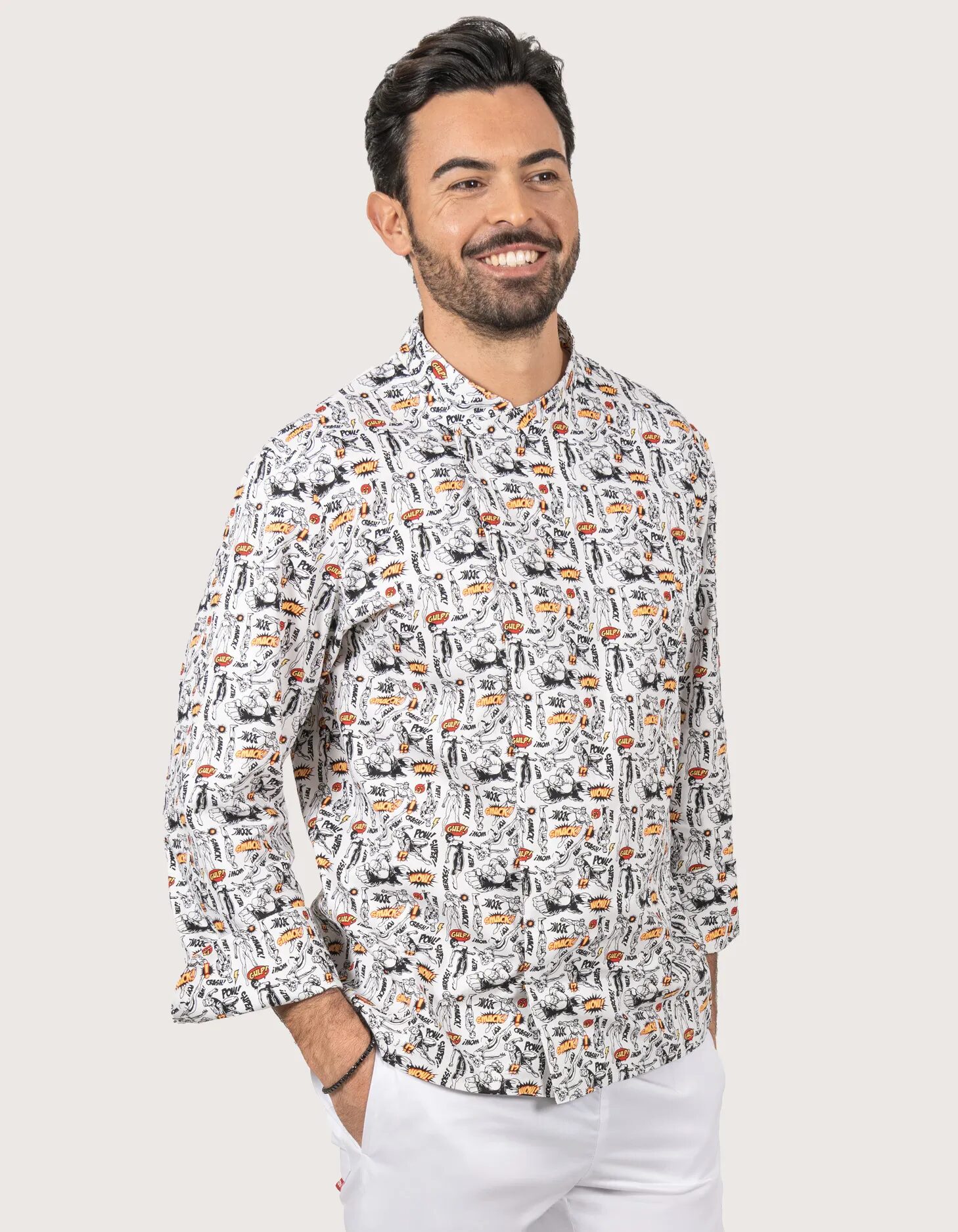 A Toma Youniform Gordon Superhero szakácskabát nem csupán egy munkaruha, hanem egy stílusos és praktikus viselet a konyhában dolgozó szakemberek számára. A vidám, „Superhero” mintázat feldobja a hangulatot, míg a 100% pamut anyag és a hátoldali szellőzőrendszer biztosítja a kényelmet a legforróbb helyzetekben is. Ideális választás modern bisztrókba, burger bárokba, vagy akár egyedi ajándéknak is.
