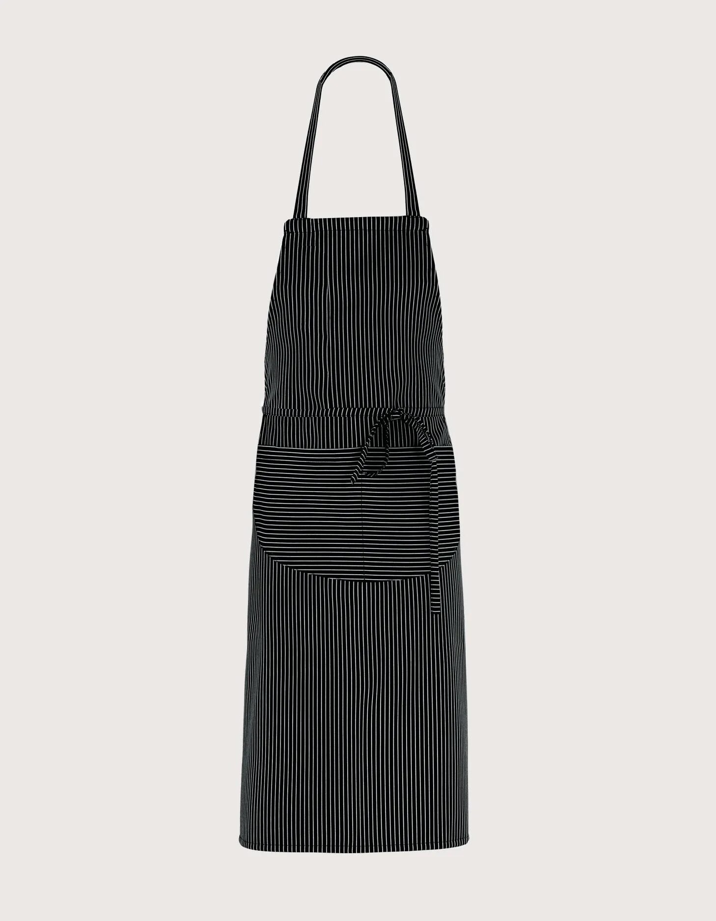 A pinstripe minta (vékony csíkos) ideális választás a konyhai környezetben, mivel optikailag elfedi a szennyeződéseket, például a lisztet, szószt vagy olajat. A Lima modell modern szabású, és praktikus részletekkel rendelkezik, amelyek megkönnyítik a munkát.