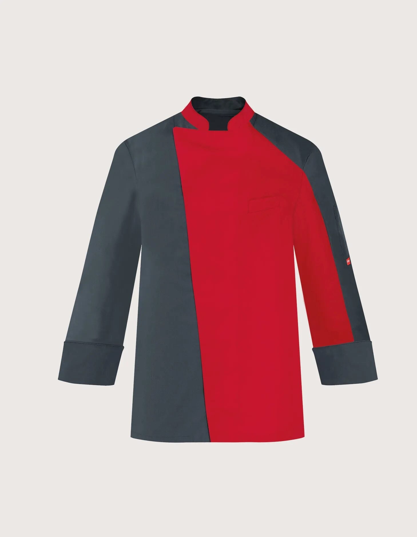 Toma Youniform Unisex sötétszürke-piros szakácskabát „Everest”