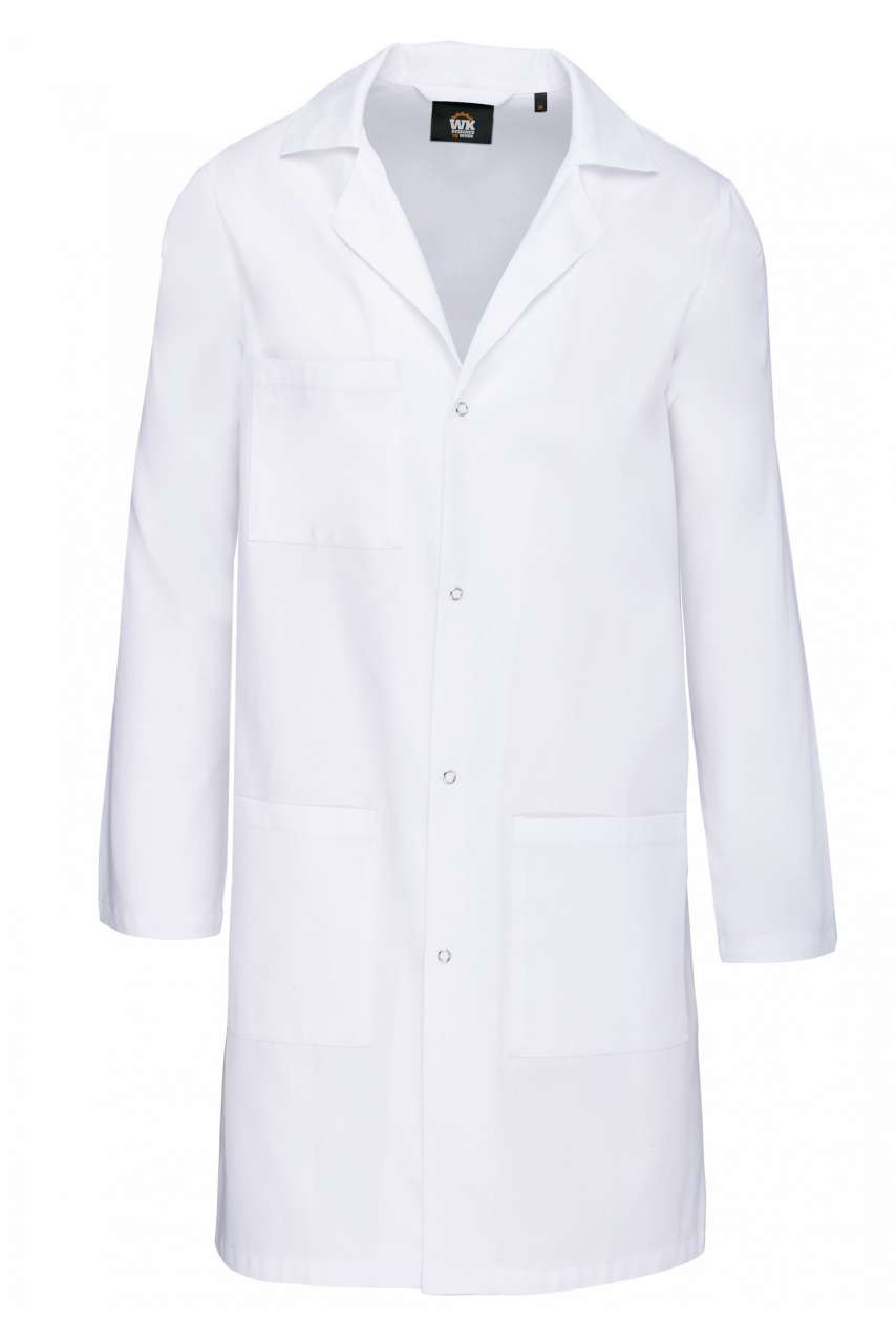 Ez egy fehér uniszex munkaköpeny, 100% pamutból készült, twill szövettel. 60°C-on mosható, nyitott gallérral és 4 gombos elülső rögzítéssel rendelkezik. Két nyitott elülső zsebbel és egy mellzsebbel van ellátva. XS-től 3XL-ig kapható.